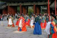Áß±ÃÁ¤Áö¸íºÎÁ¶ÇÏÀÇ(ñéÏàïáò¸Ù¤ÜþðÈùÅëð) Àå¼Ò : â°æ±Ã ¸íÀüÀü ÀϽà : 2000³â 10¿ù 14ÀÏ-15ÀÏ ÁÖÃÖ : ¹®ÈÀçû '2000 ±ÃÁß¹®È ÀçÇö Çà»ç'¿¡¼ ÃÖÃÊ·Î ÀçÇöµÈ Áß±ÃÁ¤Áö¸íºÎÁ¶ÇÏÀÇ(ñéÏàïáò¸Ù¤ÜþðÈùÅëð), Áß±ÃÁ¤Áöȸ¸íºÎÀÇ(ñéÏàïáò¸üåÙ¤Üþëð)´Â Á¶¼±½Ã´ë¿¡ ¿Õºñ°¡ ³»ÀüÀ¸·Î ±ÃÁß ¿©ÀεéÀ» ºÒ·¯ ÇàÇß´ø ÀǽÄÀÌ´Ù. 'Áß±ÃÁ¤Áö¸íºÎÁ¶ÇÏÀÇ'´Â ¼³³¯°ú µ¿Áö¿¡ ³»¸íºÎ¿Í ¿Ü¸íºÎ°¡ ¿Õºñ²² ÇϷʸ¦ ¿Ã¸®´Â ÀǽÄÀ» ¸»Çϰí, 'Áß±ÃÁ¤Áöȸ¸íºÎÀÇ'´Â ÇÏ·Ê ÀǽÄÀ» ¸¶Ä£ ³»,¿Ü¸íºÎµéÀ» À§ÇØ ¿Õºñ°¡ º£Çª´Â ¿¬È¸¸¦ ¸»ÇÑ´Ù. ³»¸íºÎ(Ò®Ù¤Üþ)¶õ Á¶¼±½Ã´ë ±ÃÁß¿¡¼ ±¹¿Õ ¹× ¿Õ½ÇÀ» º¸ÇÊÇÏ´ø ºó(Þ®), ±ÍÀÎ(ÏþìÑ), ¼ÒÀÇ(á¹ëð), ¼÷ÀÇ(â×ëð) µîÀ» ÃÑĪÇÏ¸ç ¿Ü¸íºÎ(èâÙ¤Üþ)´Â Á¶¼±½Ã´ë Ư¼öÃþÀÇ ¿©Àΰú ºÀÀÛÀ» ¹ÞÀº ÀÏ¹Ý »ç´ëºÎ¿©ÀÎÀ» ÅëĪÇÏ¿© ÁöĪÇÑ´Ù. Ư¼öÃþÀÇ ¿©ÀÎÀº ¿Õ½ÇÀÇ Á¤ 1ǰÀÎ ºó(Þ®)ºÎÅÍ Á¾9ǰÀ» ¹ÞÀº ÁÖº¯±Ã(ñ´Ü¨Ïà)±îÁöÀÇ ³»¸íºÎ¸¦ Á¦¿ÜÇÑ ¿ÕÀÇ À¯¸ð, ¿ÕºñÀÇ ¾î¸Ó´Ï, ¿ÕÀÇ µþ(°øÁÖ, ¿ËÁÖ), ¿Õ¼¼ÀÚÀÇ µþ(±ºÁÖ, ÇöÁÖ)À» ÁöĪÇϸç, ÀÏ¹Ý »ç´ëºÎ¿©ÀÎÀº Á¾Ä£ÀÇ Ã³¿Í ¹®¹«¹é°üÀÇ Ã³ µîÀ» ¸»ÇÑ´Ù. 'Á¶ÇÏ(ðÈùÅ)'´Â Á¶È¸(ðÈüå)¿Í °æÇÏÀÇ ¸»À» ¿Ã¸®´Â µÎ °¡Áö ÀǽÄÀÇ ¿¬¼ÓÀ¸·Î ÀÌ·ç¾îÁø °ÍÀ¸·Î 'Á¶ÇöºÀÇÏ(ðÈúæÜåùÅ)'ÀÇ ¾àĪÀ̶ó°í ÇÒ ¼ö ÀÖ´Ù. µû¶ó¼ ¹é°üÀÌ ±¹¿ÕÀ» Á¶ÇöÇÏ´Â °¢Á¾ ÀǽÄÀ» ÅëĪÇÏ´Â Á¶È¸ÀÇ ÀÏÁ¾ÀÌ´Ù. ±â·Ï¿¡ ÀÇÇÏ¸é ¿ì¸®³ª¶ó¿¡¼ Á¶Çϰ¡ ½ÃÀÛµÈ ¶§´Â ½Å¶ó Áø´ö¿Õ(ÀçÀ§ 647-654) 5³âºÎÅͶó°í ÇÑ´Ù. ÀÌ ¿¬È¸¿¡¼´Â ³»,¿Ü¸íºÎÀεéÀÌ ¿ÕºñÀÇ °Ç°°ú Àå¼ö¸¦ Ãà¿øÇÏ¿´°í, ÀÌ·¯ÇÑ ÀÇ·Ê´Â ¿ÕºñÀÇ ±ÇÀ§¸¦ ³»,¿Ü¸íºÎ¿¡ °ú½ÃÇϰí, ¿Õºñ°¡ Á÷Á¢ ¿¬È¸¿¡ Âü¼®ÇÏ¿© ³»,¿Ü¸íºÎ°£ÀÇ È¸ñ°ú °á¼ÓÀ» µµ¸ðÇÏ´Â Áß¿äÇÑ ÀÚ¸®¿´´Ù. À翬µÈ Çà»ç´Â ¼¼Á¾½Ç·Ï°ú ±¹Á¶¿À·ÊÀÇ µîÀÇ °¡·ÊÀǽÄÀ» ÂüÁ¶ÇÏ¿© ÃÖÃÊ·Î ¿øÀü¿¡ °¡±õ°Ô À籸¼ºÇÏ¿© ¹®ÈÀçû¿¡¼ ÁÖÃÖ, ÁøÇàÇÏ´Â Çà»çÀÌ´Ù. Áß±ÃÁ¤Áö¸íºÎÁ¶ÇÏÀÇ ¹× Áß±ÃÁ¤Áöȸ¸íºÎÀÇ ÀýÂ÷´Â ´ÙÀ½°ú °°´Ù. Áß±ÃÁ¤Áö¸íºÎÁ¶ÇÏÀÇ(ñéÏàïáò¸Ù¤ÜþðÈùÅëð) Ãʾö(ÀÇÀå,º°°¨,³»½Ã ÀÔÀå) - Áß¾ö(¿©°øÀÎ, »çºó, »çÂù, ÀüÂù, Àü¾ð ÀÔÀå) - »ï¾ö(¿Õºñ ÀÔÀå) - ³»¸íºÎ Á¶ÇÏ(ÀÔÀå/±¹±Ã»ç¹è/Ä¡»ç³¶µ¶/±³Áö¼±Æ÷/±¹±Ã»ç¹è /ÅðÀ§) - ¿Ü¸íºÎ Á¶ÇÏ(ÀÔÀå/±¹±Ã»ç¹è/Ä¡»ç³¶µ¶/±³Áö¼±Æ÷/ÅðÀ§) - ¿¹ÇÊ (ÀǷʸ¦ ¸¶Ä§) Áß±ÃÁ¤Áöȸ¸íºÎÀÇ(ñéÏàïáò¸üåÙ¤Üþëð) Ãʾö(ÀÇÀå,º°°¨,³»½Ã ÀÔÀå) - Áß¾ö(¿©°øÀÎ, »çºó, »çÂù, ÀüÂù, Àü¾ð ÀÔÀå) - »ï¾ö(¿Õºñ ÀÔÀå) - ±¹±Ã»ç¹è(³»¿Ü¸íºÎ, ¼¼ÀÚºóÀÌ ¿Õºñ²² 4¹ø ÀýÀ» ¿Ã¸²) - 1ÀÛ(³»¸íºÎ ¹Ý¼ö°¡ ¿Õºñ²² ¼úÀ» ¿Ã¸²/Ä¡»ç³¶µ¶/»ç¹è) - 2ÀÛ(¼¼ÀÚºóÀÌ ¿Õºñ²² ¼úÀ» ¿Ã¸²/ Ä¡»ç³¶µ¶/»ç¹è) - ÁøÈ(²ÉÀ» ¿Ã¸²) - ÁøÅÁ(ÅÁÀ» ¿Ã¸²) - 3ÀÛ~9ÀÛ(³»¿Ü¸íºÎ, ¼¼ÀÚºó¿¡°Ô ¼úÀ» ¿Ã¸². ÅÁ,¼ú ¹Ýº¹ 9¼ø¹è) - Áø´ë¼±(´ë¼±À» ¿Ã¸²) - ±¹±Ã»ç¹è (³»¿Ü¸íºÎ, ¼¼ÀÚºóÀÌ ¿Õºñ²² 4¹ø ÀýÀ» ¿Ã¸²) - ¿¹ÇÊ(ÀǷʸ¦ ¸¶Ä§) |